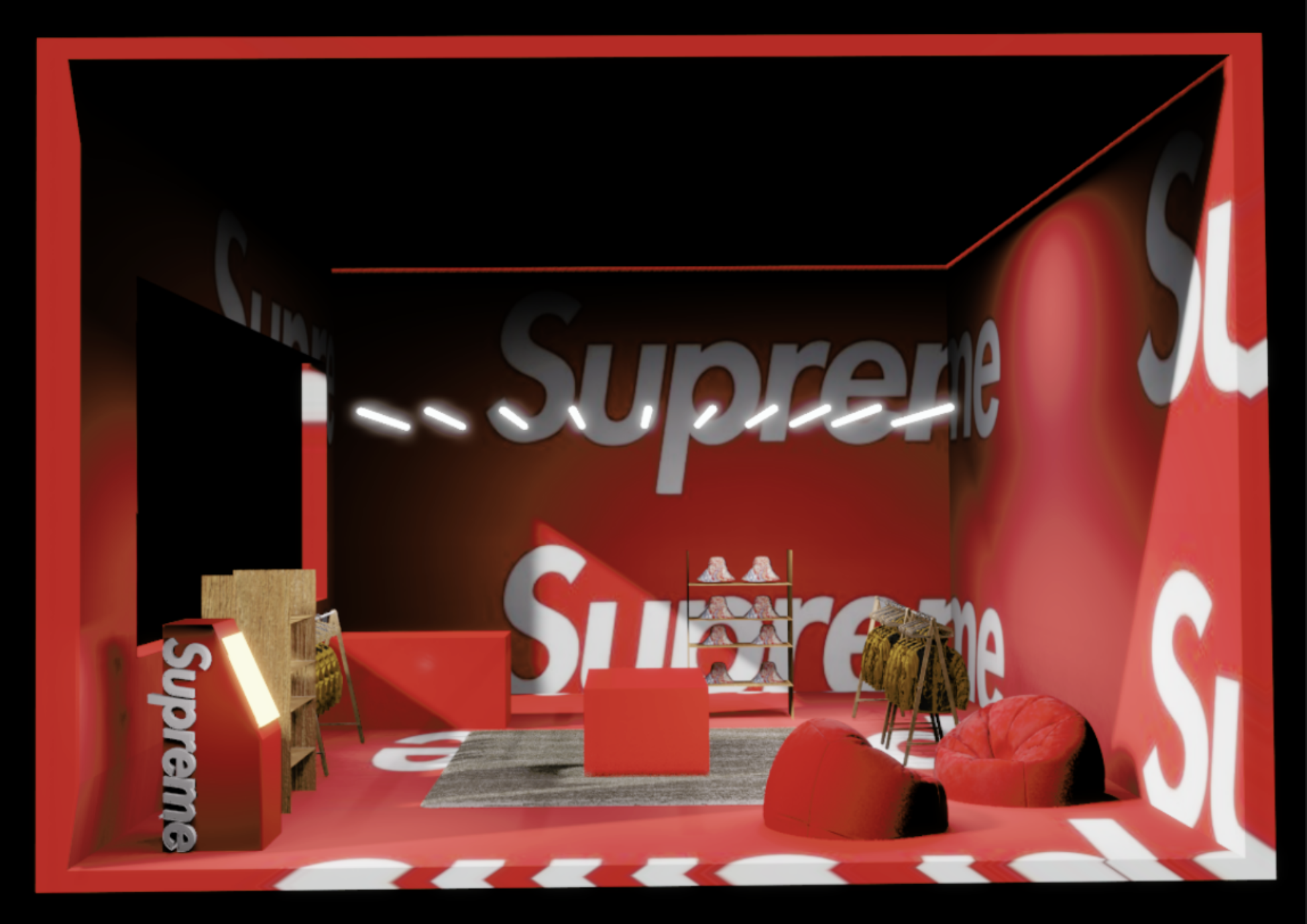 SUPREME POP-UP STORE REnder sTage process Final REnder KIOSK Model / REnder stage process FInal Kiosk Render